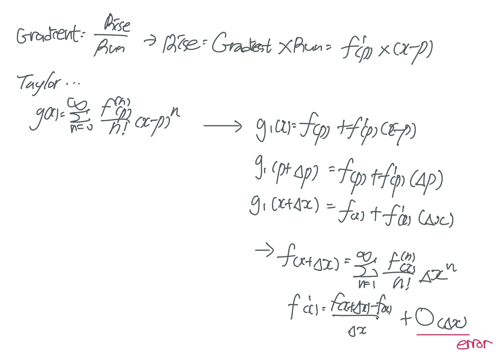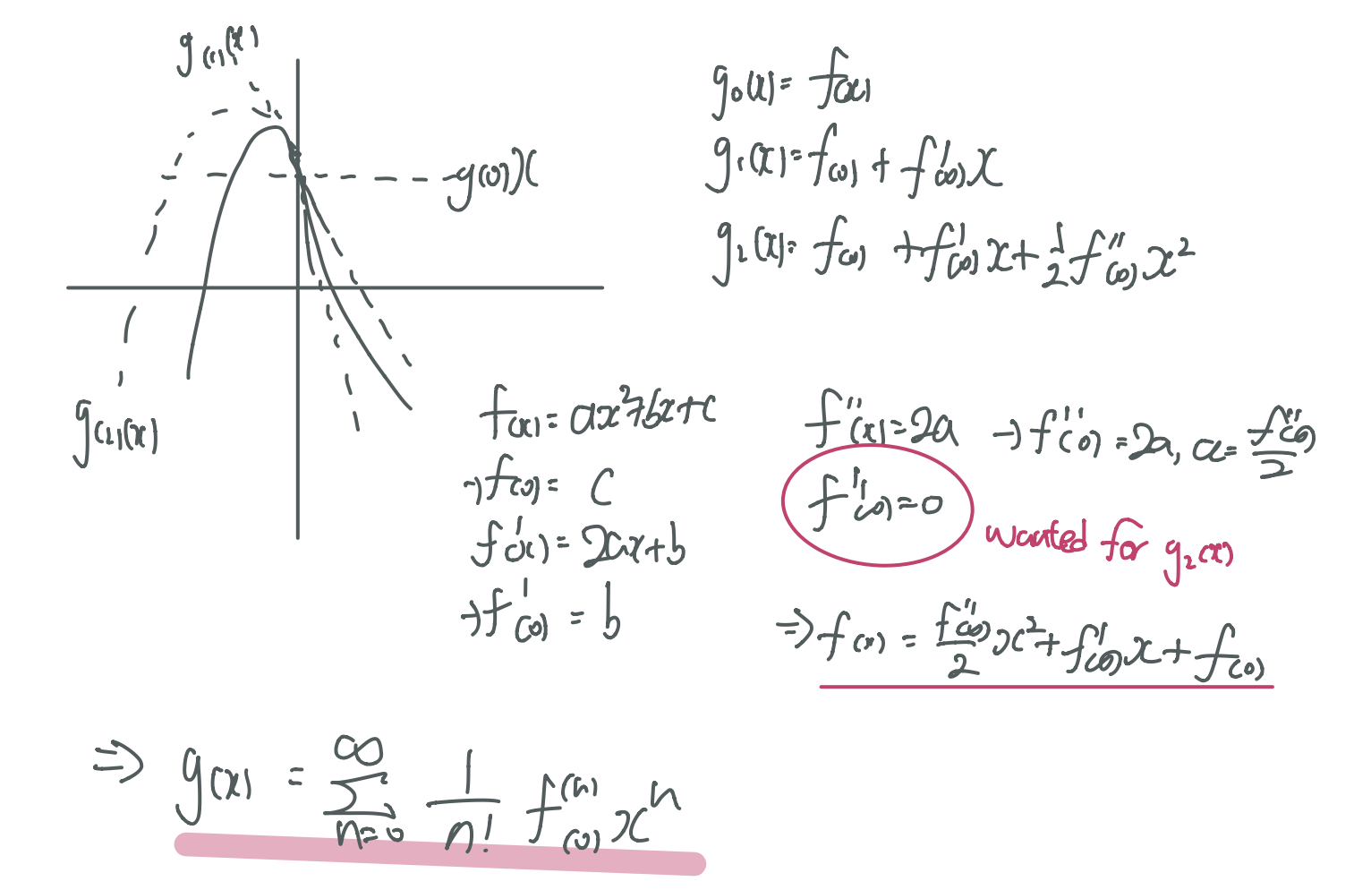 - 함수 f(x)의 x=0 지점에 대한 모든 정보를 알고 있을 때, 이를 통해 함수 전반의 모양을 예측할 수 있다.